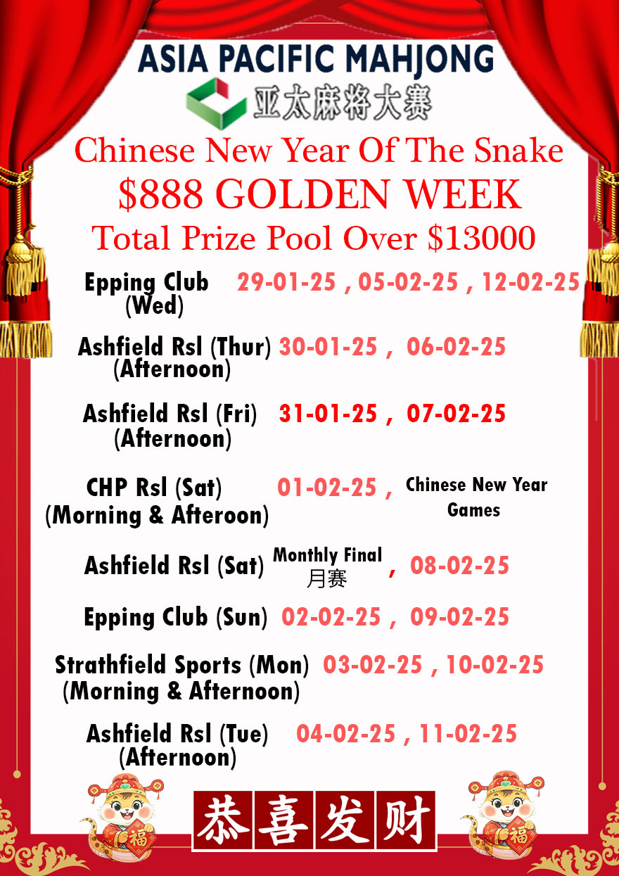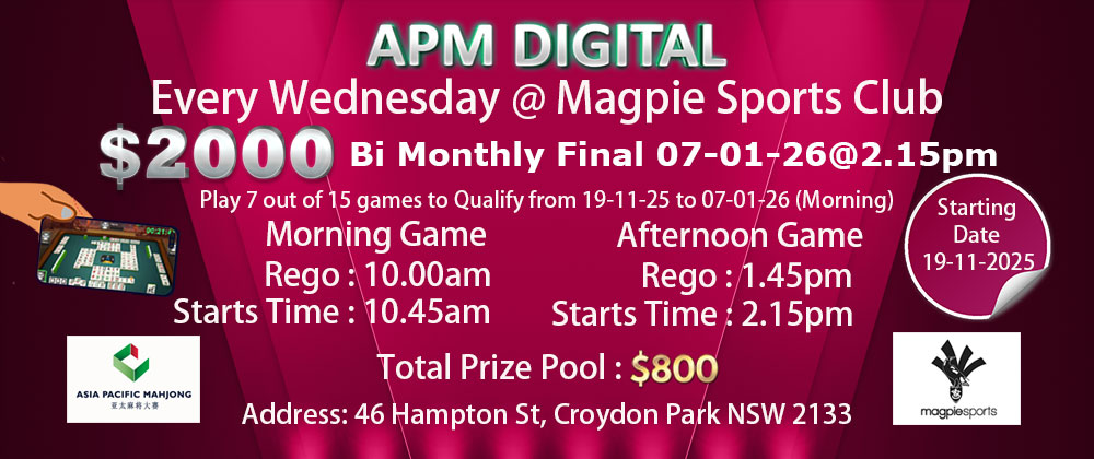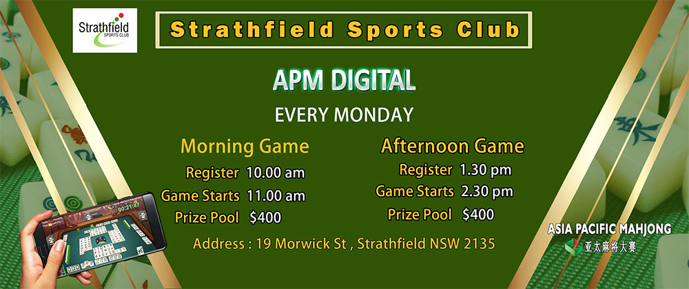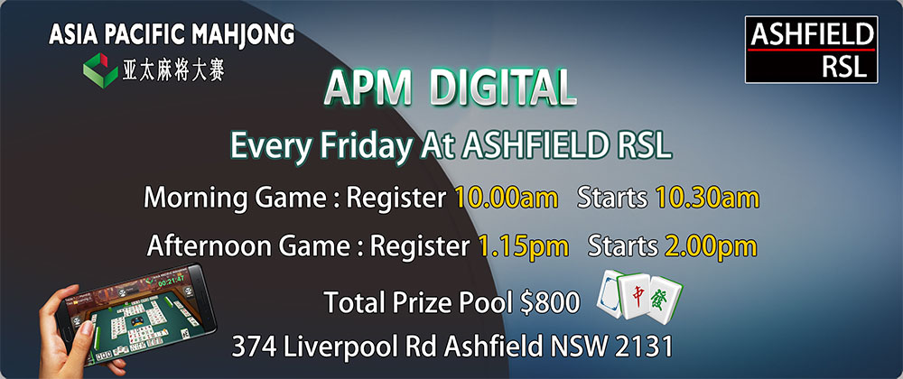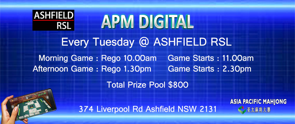 And Ashfield Rsl will hold afternoon DIGITAL game at 3pm and night game 7pm will be TABLE mahjong game