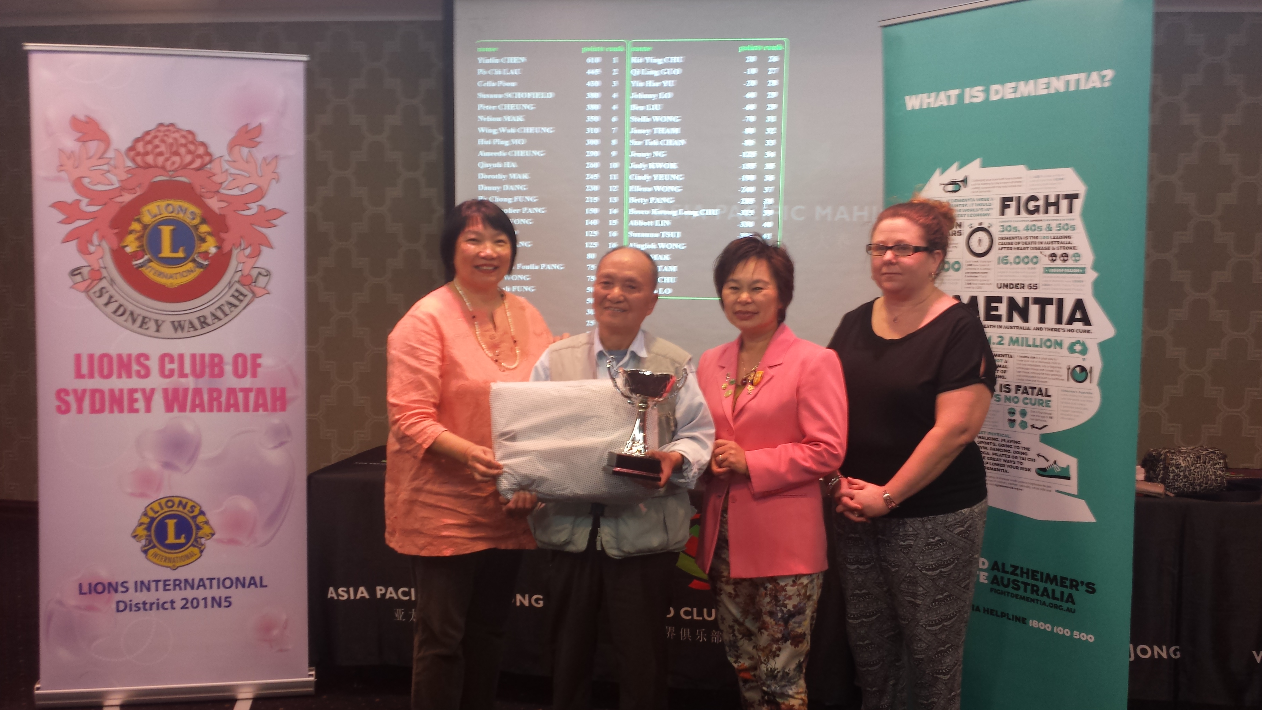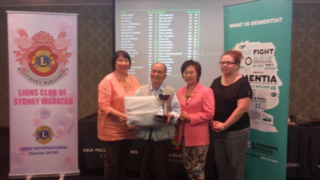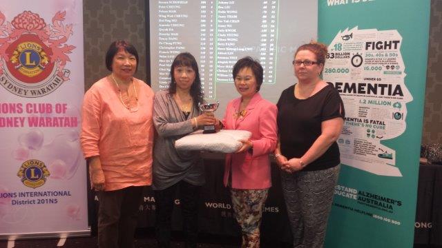 We would like to thank the Epping Club for their tremendous support with their generous supply of sandwiches, fresh fruits, juices and beverages as well as hampers and food vouchers as prizes. We would also like to thank the Lions Club Sydney Waratah, the Pink Ladies, for coming to support this cause and also contributing to the various prizes. Once again, Trophyland has been very generous with their donation of Trophies for the tournament. We thank you very much for these beautiful trophies to remind the winners of their participation in this great charity mahjong tournament. Last but not least, we would like to thank 2AC Chinese Radio Station for broadcasting the Charity tournament and bringing awareness to their listeners about Alzheimerˇ¦s Australia for the past month. Most of all we would like to thank all mahjong players who have participated in the charity tournament