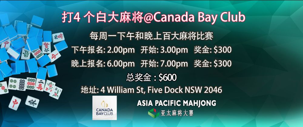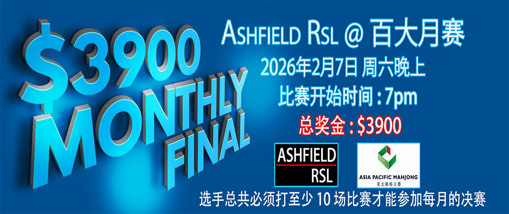 另请注意,9 月 2 日下午和晚上的比赛将在 Ashfield RSL 举行 – 4 Baida Mahjong – 总奖池:$1000